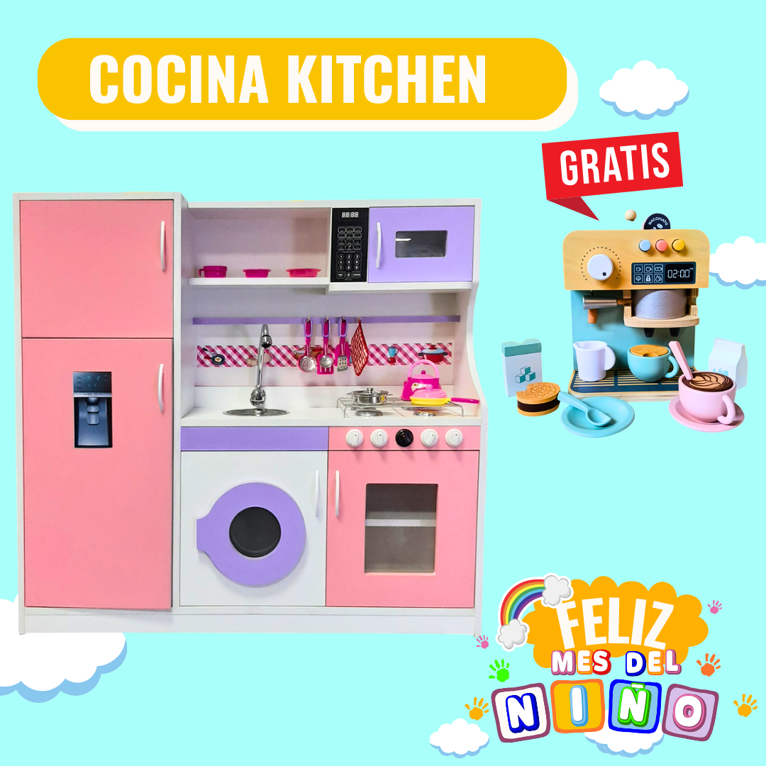 Medidas: 1,10 mt de altura x 1,20 cm de ancho x 32 cm de profundidad, incluye cocina, horno, refri, microondas.