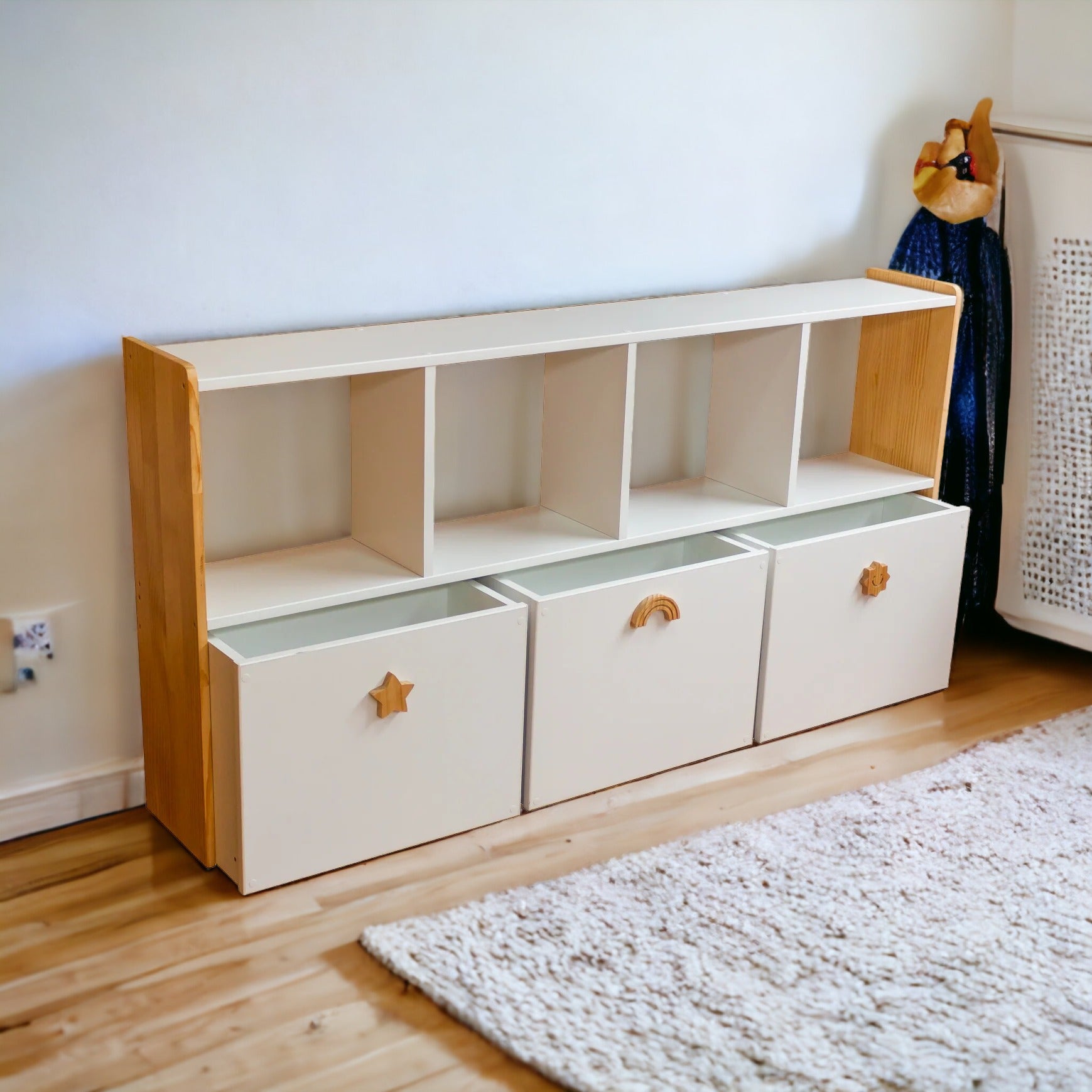 Diseñado para fomentar el orden y la independencia en los niños. Con cajones prácticos y fáciles de usar por los pequeños. Ideal para organizar juguetes y enseñar hábitos responsables.