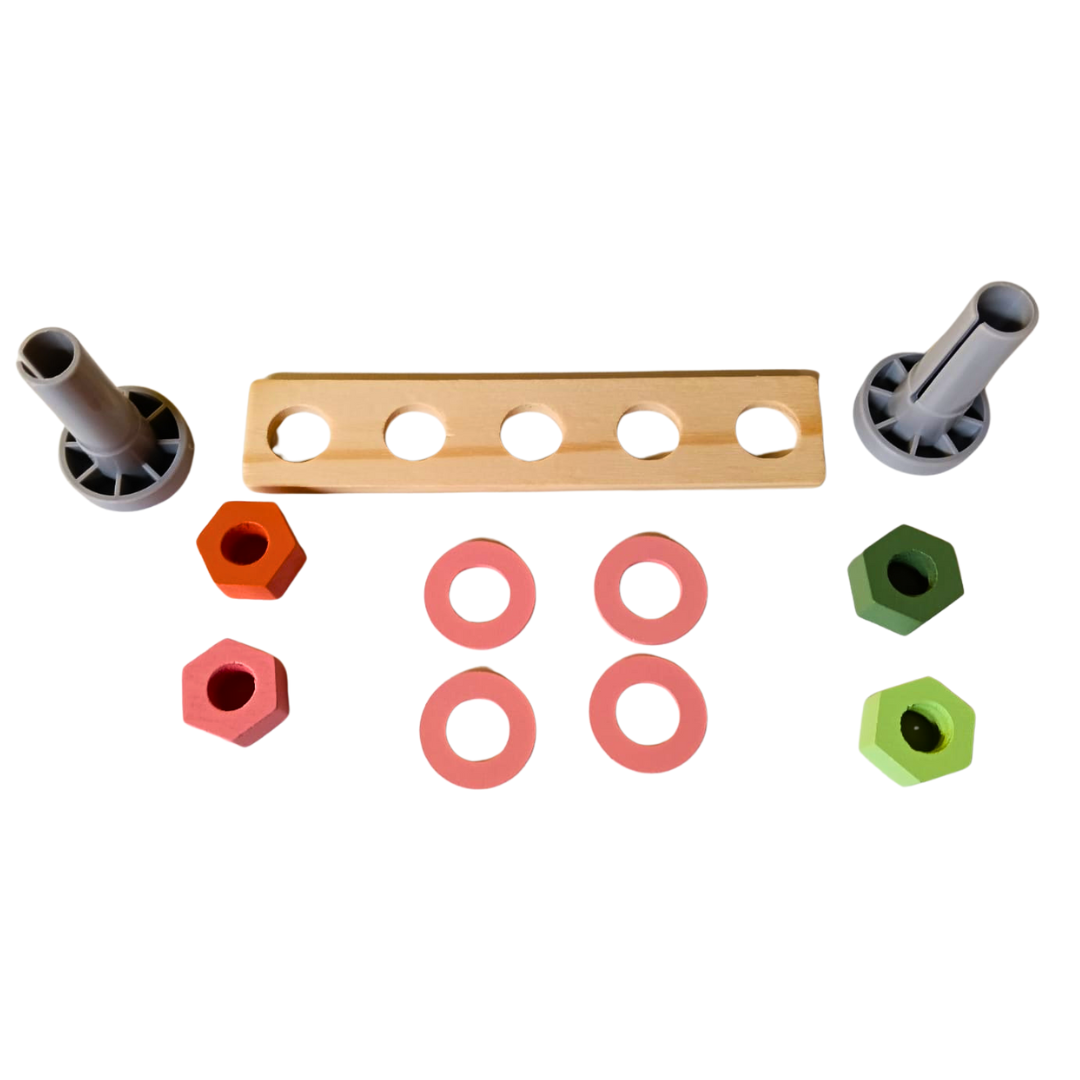 Este kit de madera simula una experiencia real para el niño por medio del uso de herramientas que él observa en su entorno diario.